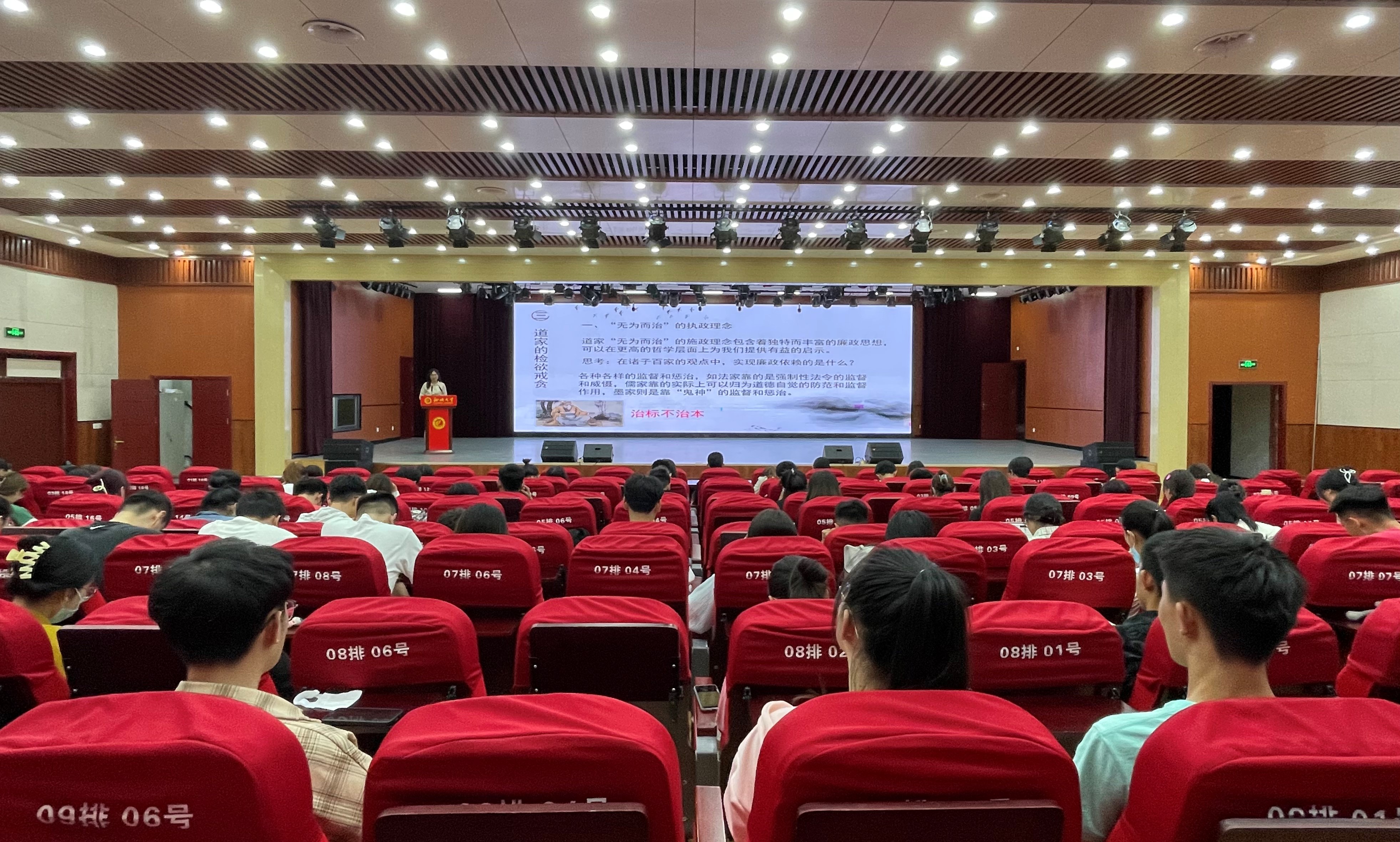 延玥以先秦文献中“廉”的字义为切入点,讲解了四部分内容。一是廉政思想内涵、廉政文化基础和“廉”的思想史意义;二是以儒家思想为代表的“以德养廉”,重点介绍了德治对执政者的廉政约束;三是以道家思想为代表的“检欲戒贪”,剖析了老子的“无为而治”的执政理念;四是以法家思想为代表的“以邢惩贪”,指出法家旗帜鲜明地主张严法酷刑的法治思想。最后,延玥引导同学们“要用一生的长度看问题”,以身边几个真实案例教育同学们不要在蝇头小利面前失了分寸,要守住本心,有信念、有信心、有信仰。