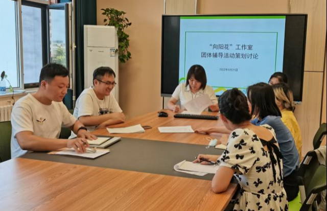 为了推进活动的顺利进行,工作室主持人李冉带领团队进行了10天的准备,并召开研讨会。准备内容包括辅导活动指导语的制定、场地的考察、团体辅导游戏的选择及顺序、活动结束后的分享引导、突发状况的处理等。研讨会上,成员们各抒己见,最后敲定了以新生适应为主题的团体辅导活动方案,即分为五个环节进行,分别为“你我初相识、桃花朵朵开”、“坐地起身”、“解开千千结”、“集体创作”和“明天更美好”。